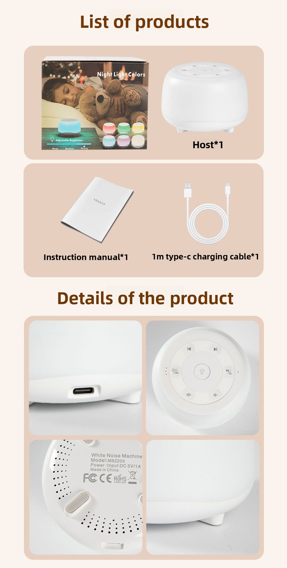 Baby-slaaphulpmiddel × 1USB-kabel × 1